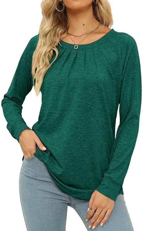 Womens Tops Long Sleeve Crew Neck Shirts Loose Casual Blouse Fall Clothes